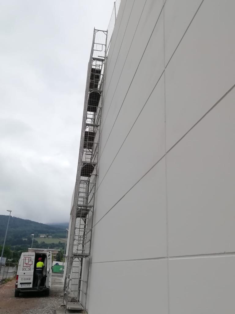 Se trata de una escalera de jaula para uso exterior o interior. Ofrece una seguridad total para el operario, que estará totalmente protegido por un marco circular compuesto por anillos metálicos y tirantes de protección de espalda. Se recomienda especialmente para acceso a tejados, terrazas, azoteas, instalaciones de paneles solares o para realizar inspecciones de la parte superior de maquinarias diversas.